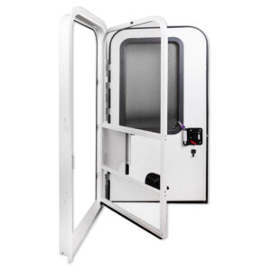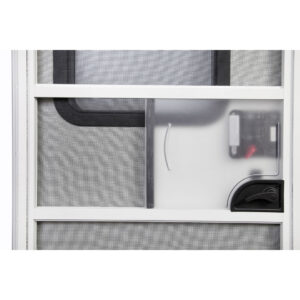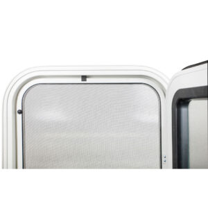 Sua tela anti-inseto fabricada em nylon proporciona segurança ao mesmo tempo que bloqueia totalmente a entrada de insetos indesejados em seu Trailer ou motorhome. O acesso à fechadura através da tela anti-inseto é acessado por uma portinhola deslizante em acrílico jateado.